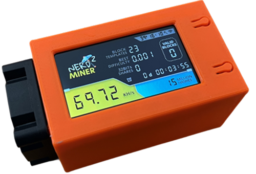 NerdMiner V2 je kompaktní a energeticky účinný Bitcoin miner určený pro učení a demonstraci konceptu solo miningu. Zařízení je postaveno na platformě LilyGo T-Display-S3, která obsahuje výkonný ESP32-S3 mikrokontrolér a integrovaný 1,9" TFT displej.