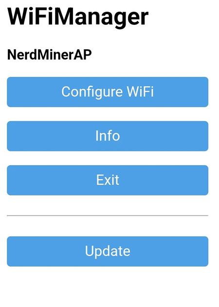 Na mobilu nebo PC se připojte k Wi-Fi síti "NerdMinerAP s heslem "MineYourCoins".