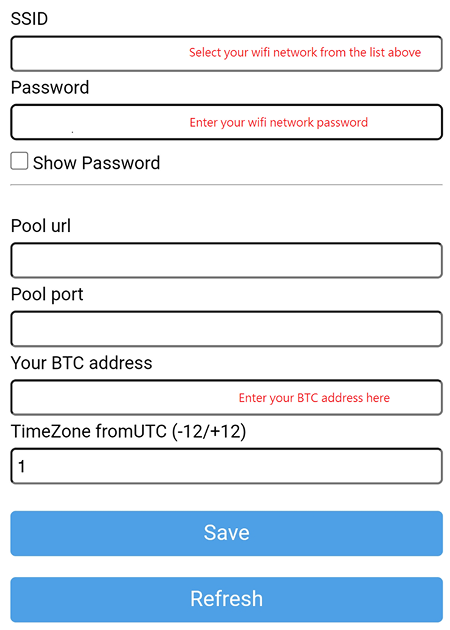 Po připojení napájení miner zobrazí výzvu k připojení k Wi-Fi.